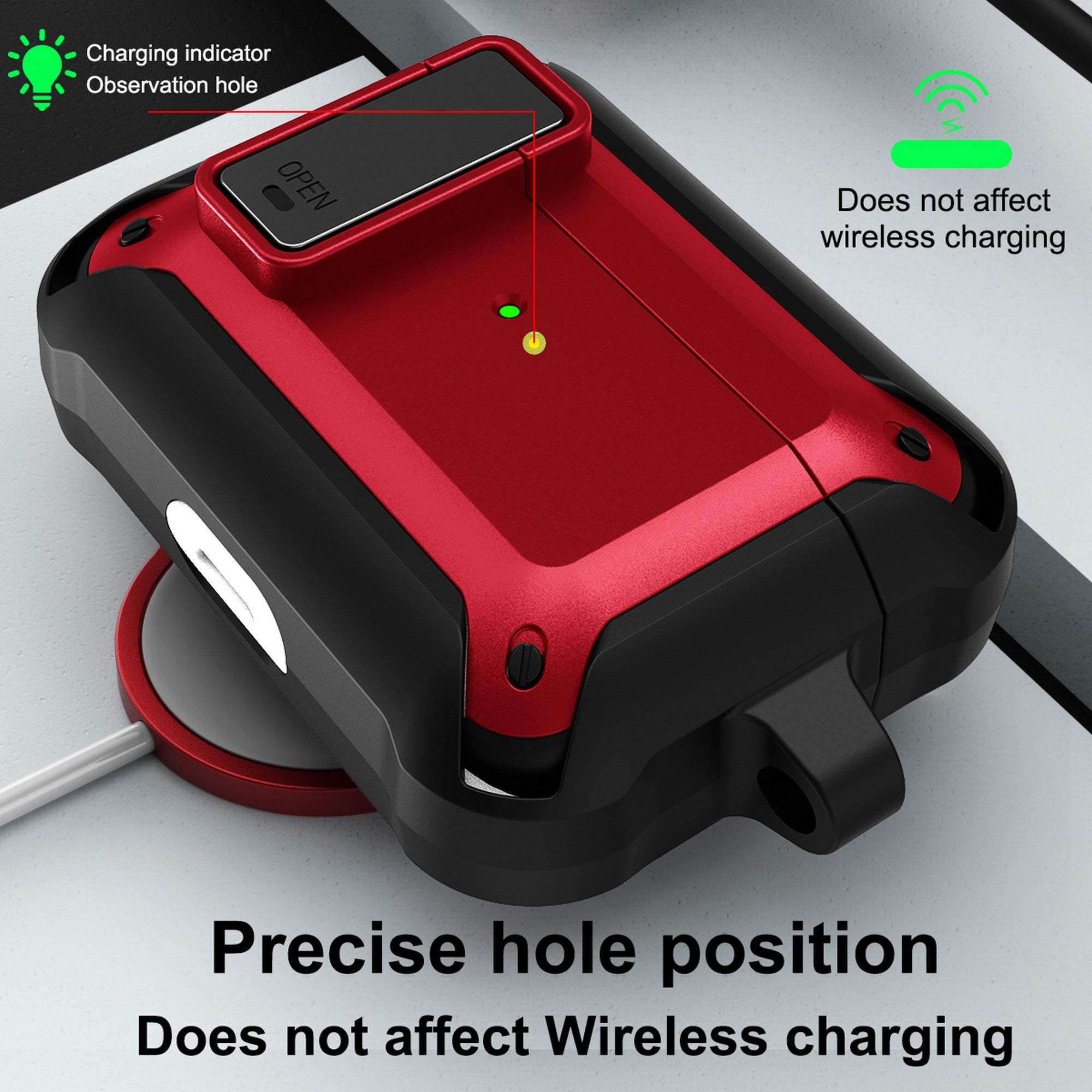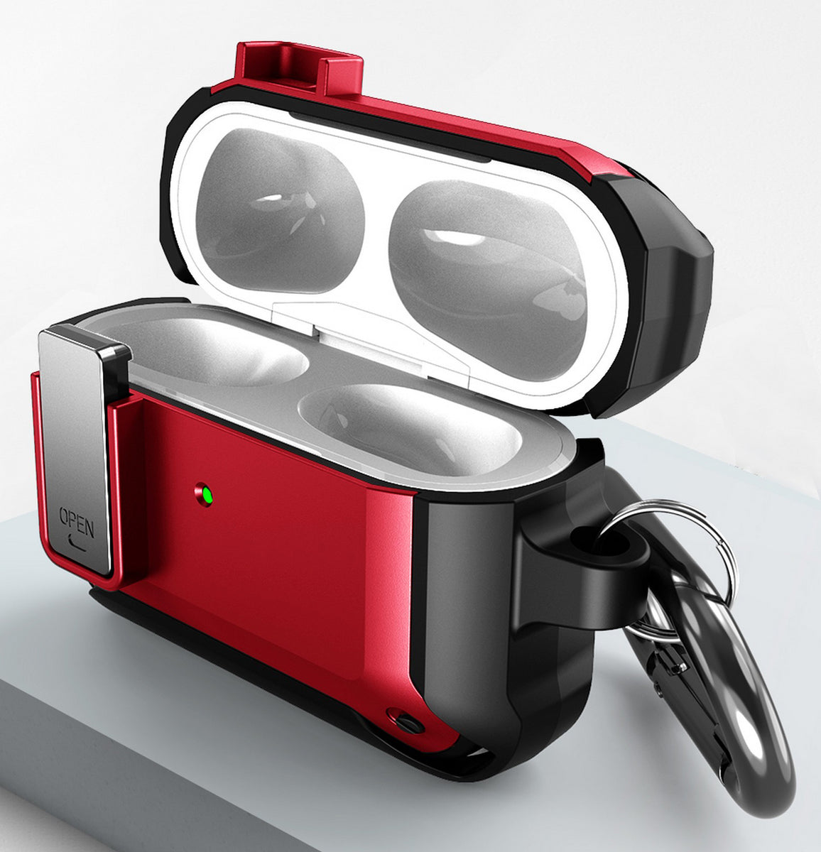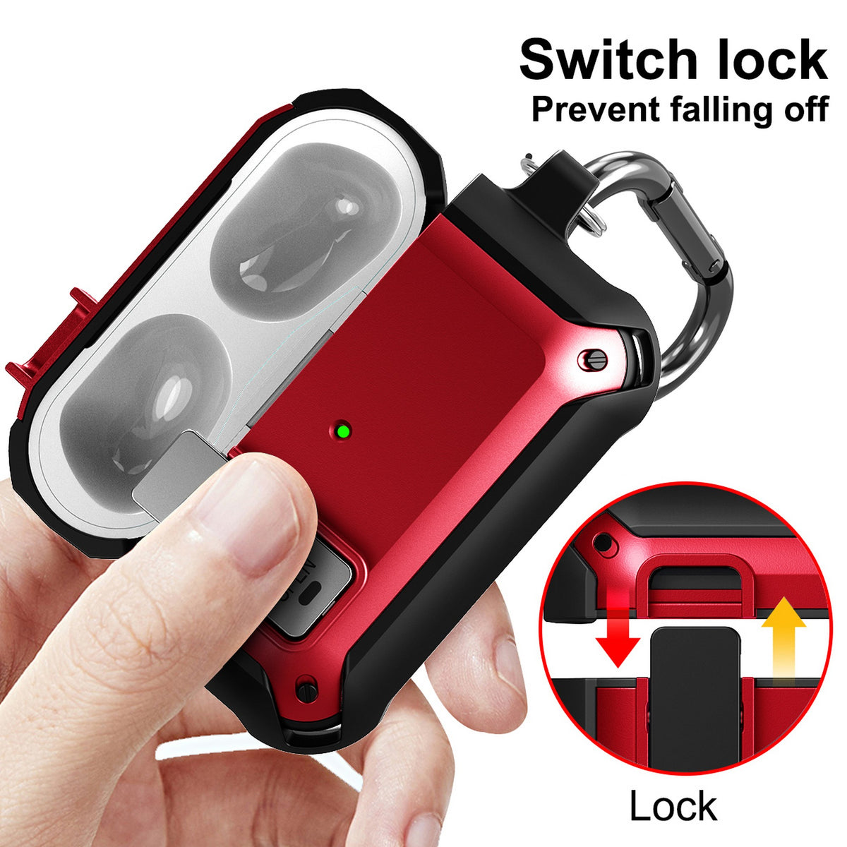 SECURE: When you close the lid, you'll hear and feel the latch "click" secure. Press the bottom of the latch to quickly open the lid. Enjoy peace of mind, knowing your Airpods Pro are secure shut.