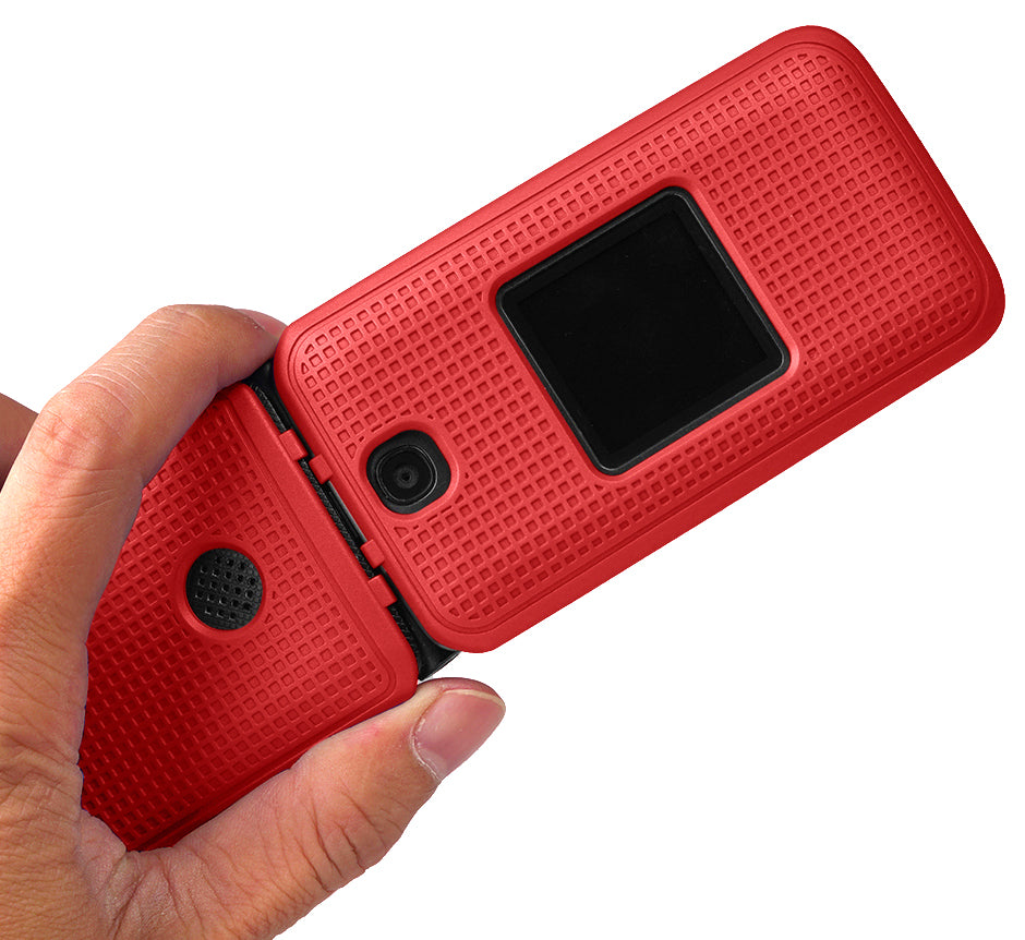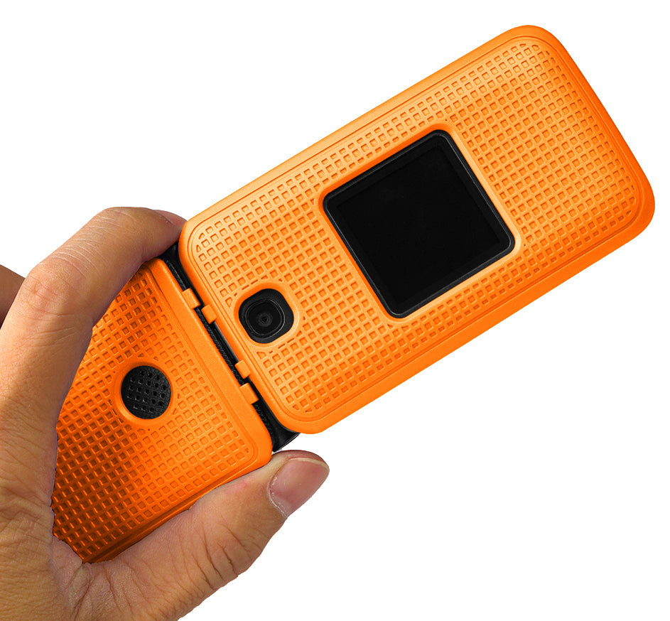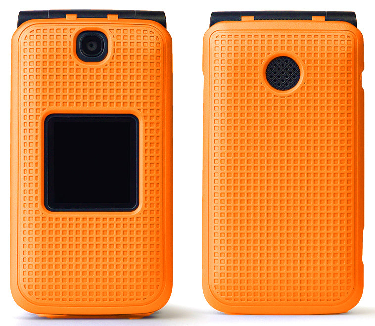 PHONE COVER: The case is composed of two hard shell covers that snap on the front and back of the phone. Your phone remains fully functional in the case with cutouts to access all buttons, charger, camera, speaker, headset. You can still flip the phone open and closed. The case is made of hard polycarbonate that has been treated with a rubberized spray powder coating for extra durability. Case also has ribbed grid pattern for enhanced tactile grip.