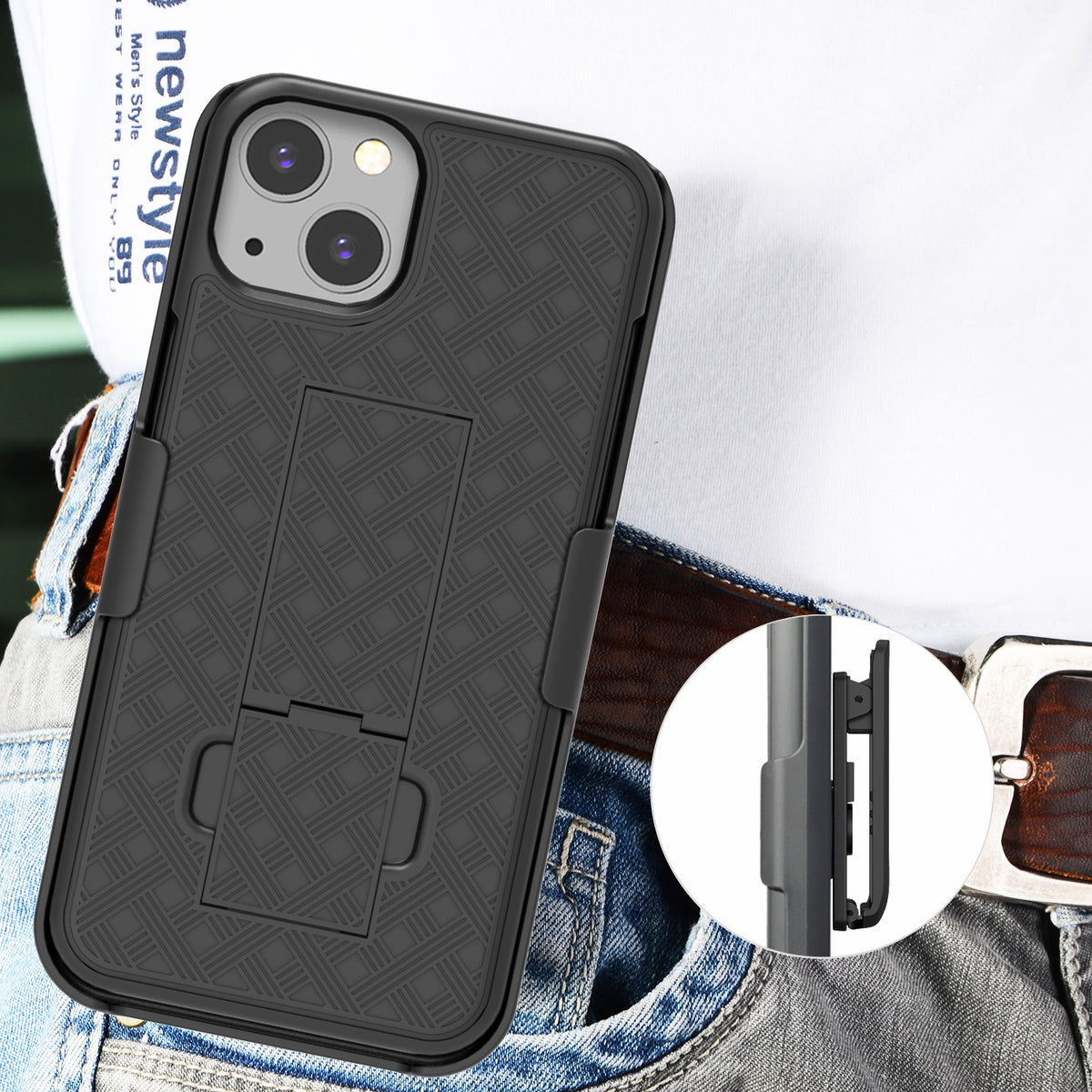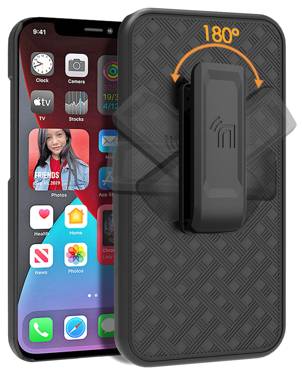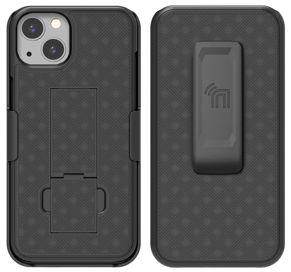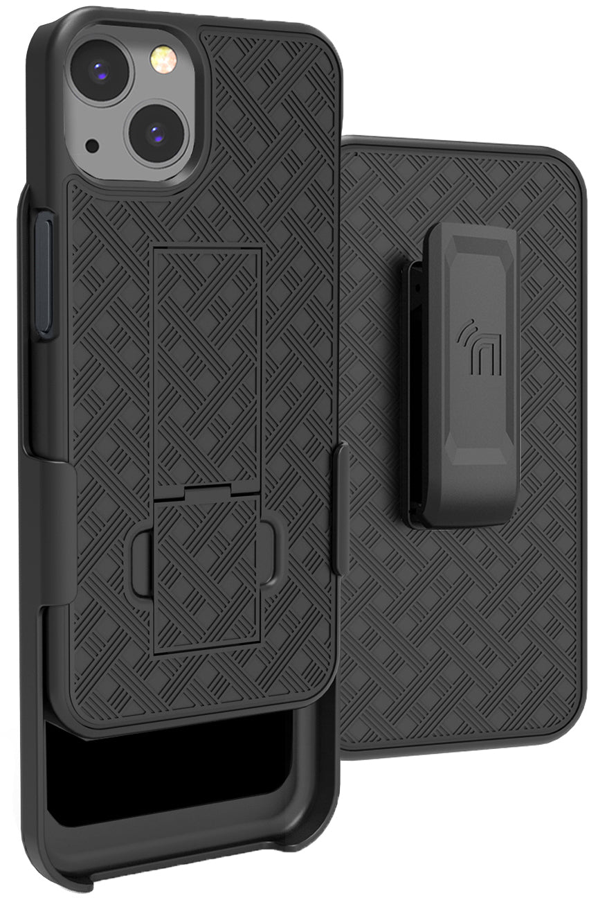 Black Hard Case Cover Stand and Belt Clip Holster Combo for Apple iPhone 13