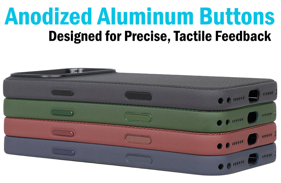 TACTILE BUTTONS: Anodized aluminum buttons provide precise feedback. Touch sensitive capture button is responsive to pressure sensitivity and touch gestures.