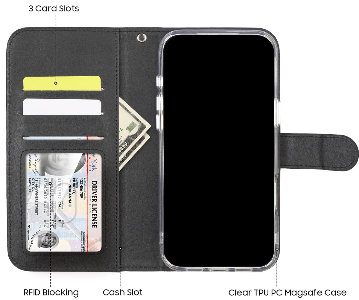 MAGNETIC WALLET: We've noticed traditional folio wallets can be a pain in the butt because your phone and wallet are always linked together. This problem has been solved via MagSafe magnetism! Now you'll have the freedom to use your iPhone independently OR use your iPhone encased in the wallet. The wallet magnetically connects to included case in the blink of an eye!