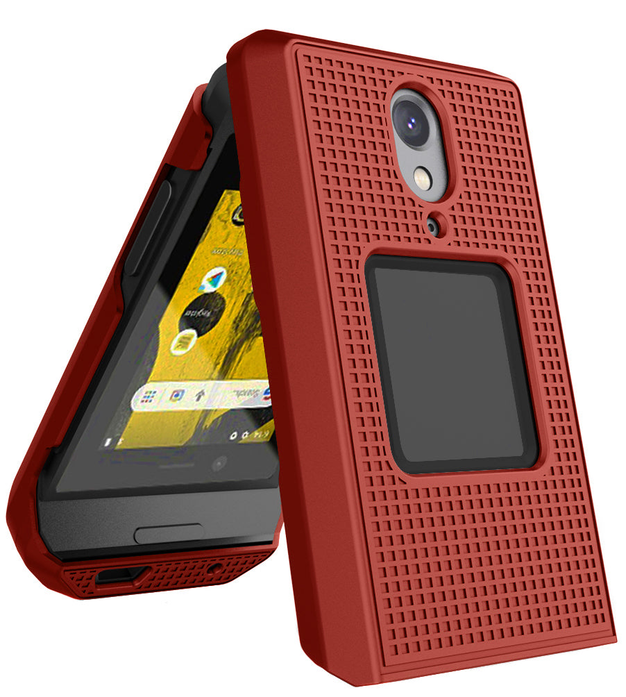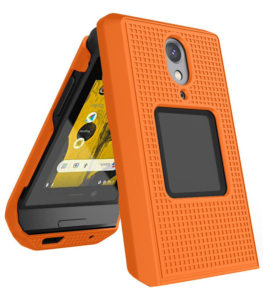 PHONE COVER: The case is composed of two hard shell covers that snap on the front/back panels. Your phone remains fully functional in the case with cutouts to access all buttons, charger, camera, speaker. You can still flip the phone open and closed as normal. The case is made of hard polycarbonate that has been treated with a powder coating for extra durability. Case also has ribbed grid pattern for enhanced tactile grip.