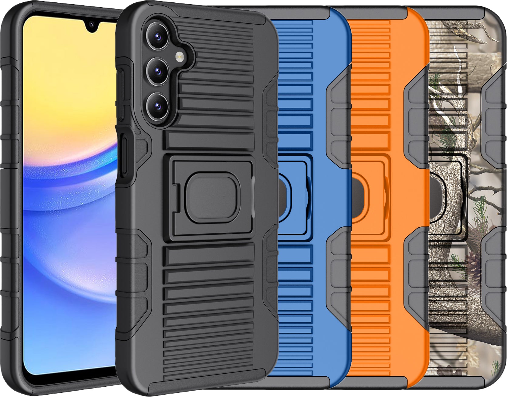 Rugged Hybrid Case with Ring Grip Stand for Samsung Galaxy A15 5G Phone