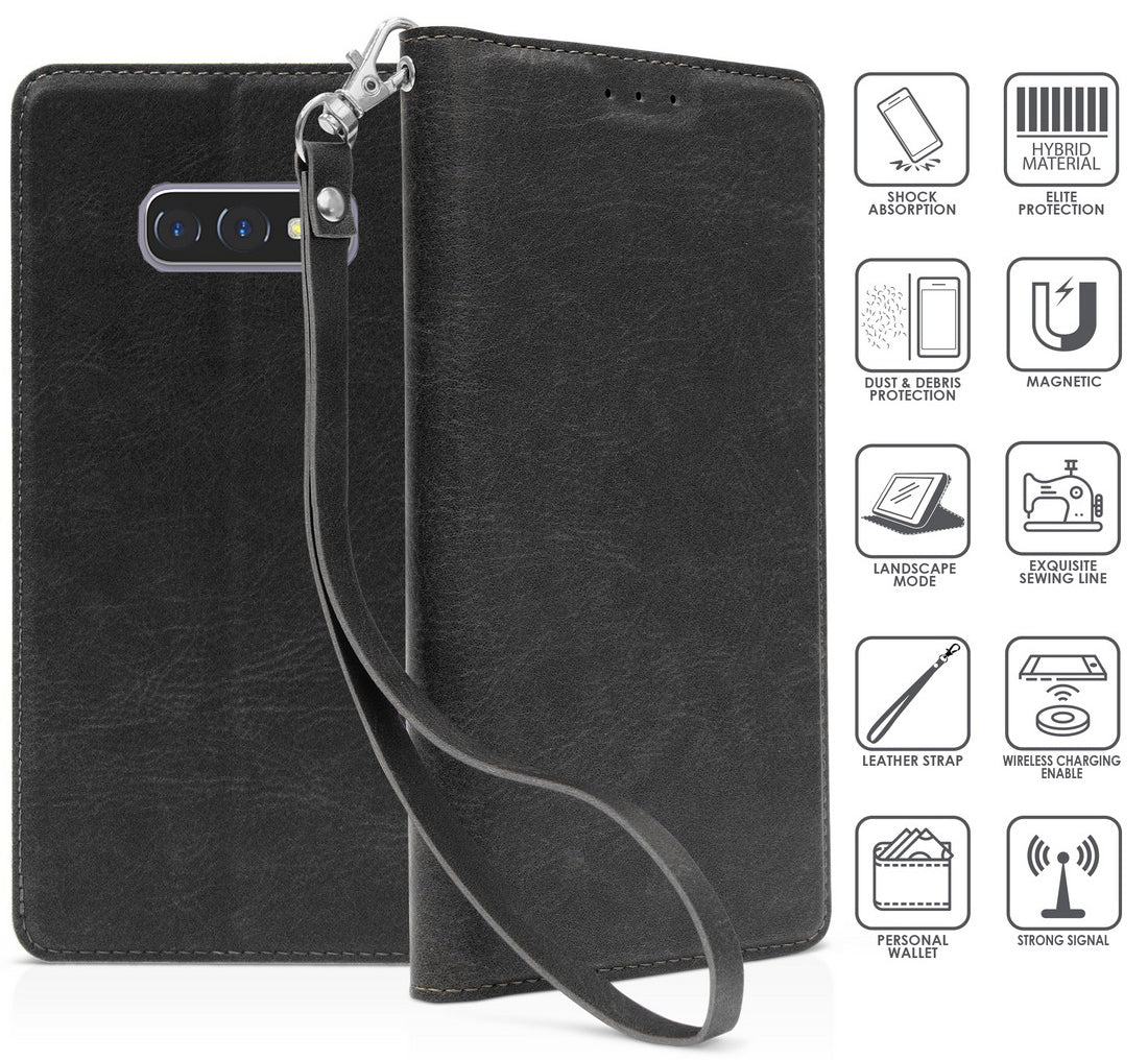 Leather Wallet Case Cover Stand Wrist Strap Lanyard for Samsung Galaxy S10e
