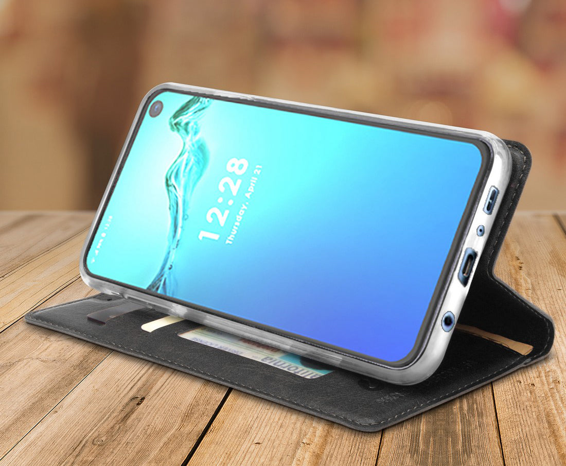 FEATURES: This case will also function as a viewing stand. You can prop the phone in the horizontal position - this is great for watching videos and movies hands-free. The case will open and close like a book - features subtle internal magnet that helps keep the case closed - no complicated snaps or buttons. You can still access camera, buttons, ports, sensors. Flip open the case to access touchscreen.