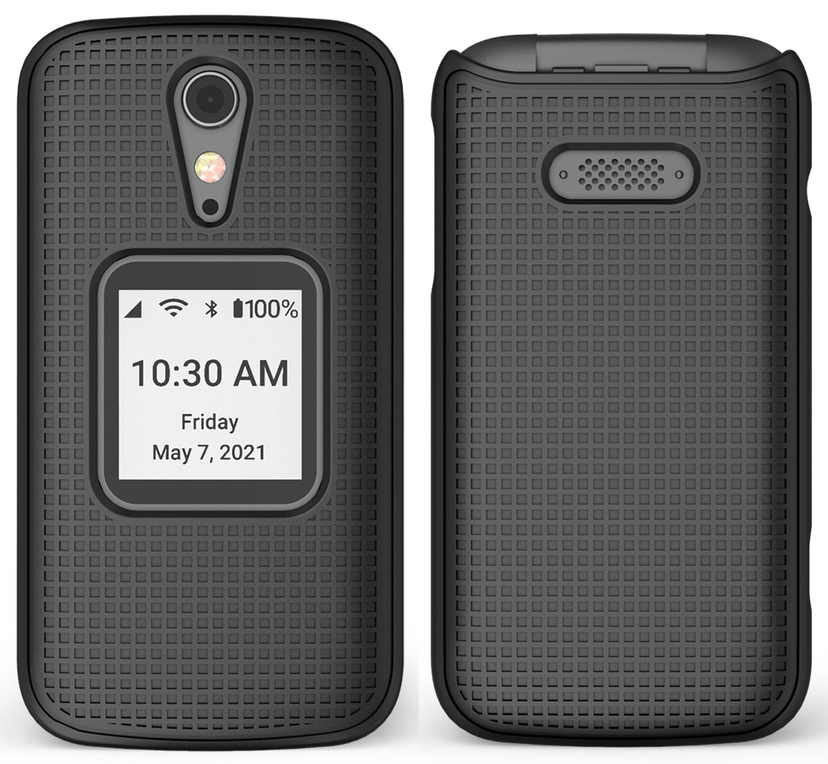 PHONE COVER: The case is extremely easy to install in the blink of an eye. Simply snap the two hard shell covers on the front and back. Your phone remains functional in the case with cutouts to access all buttons, charger, camera, speaker, headset. You can still flip the phone open and closed. The case is made of hard polycarbonate that has been treated with a powder coating for extra durability. Case also has ribbed grid pattern for enhanced tactile grip.