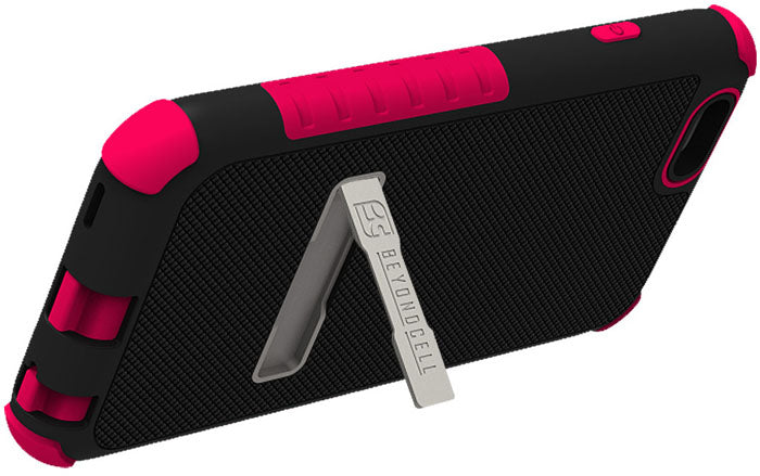 KICKSTAND: This case features a built-in kickstand mechanism on the back of the case. The stand is made of metal so it is durable and stable. Pull the metal stand out and you'll be able to prop your phone in horizontal/landscape mode. This is the ideal position for watching movies