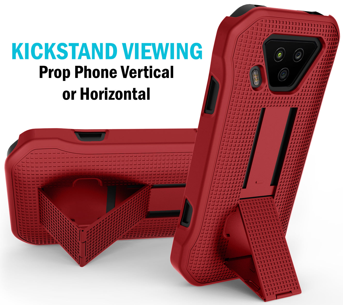 CASE KICKSTAND: Back of the case features built-in kickstand. Unsnap the hinge then slide downward until the kickstand snaps into place. Now you can prop your phone in vertical/horizontal positions at your desk - This is ideal for watching movies and videos - also handy for handsfree video calls.