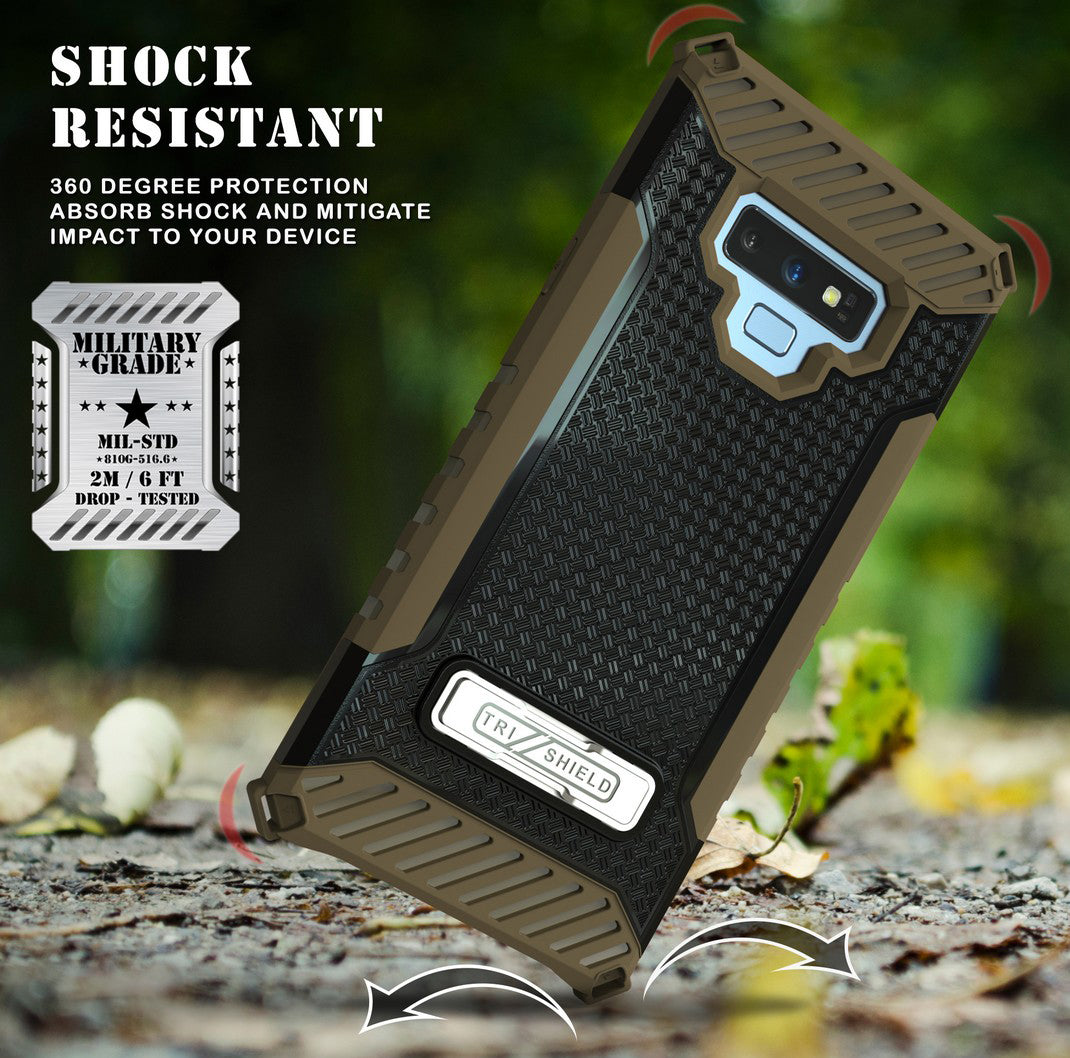 Tri-Shield Rugged Case Cover Metal Stand + Wrist Strap for Samsung Galaxy Note 9