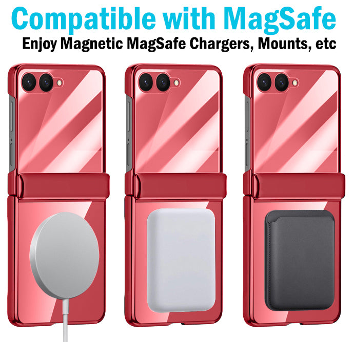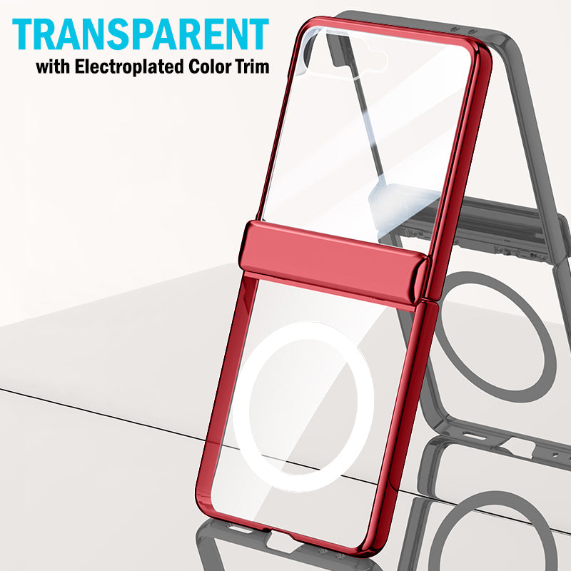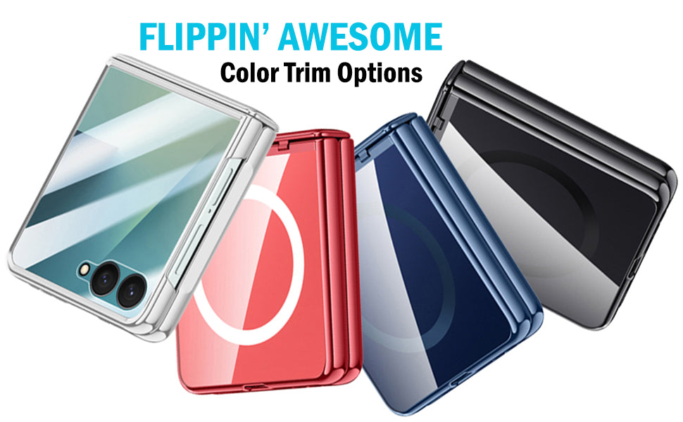 ELECTRO COLLECTION: The Electro series features clear protective front/back panels so you can see the original beauty of your Z Flip 7 phone. Electroplated color trim options. This case offers excellent protection for your screen and hinge....And it comes with a separate leather case holder!