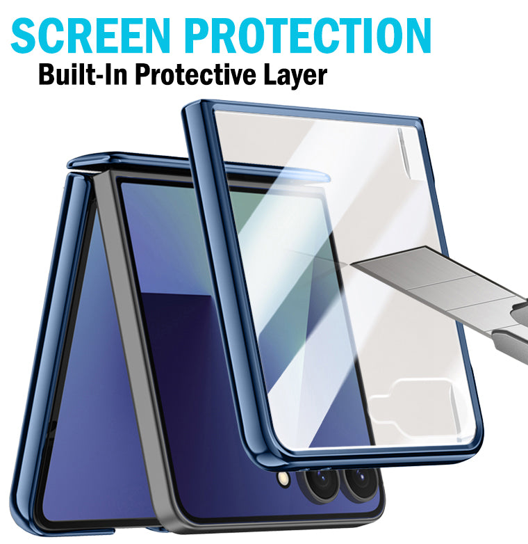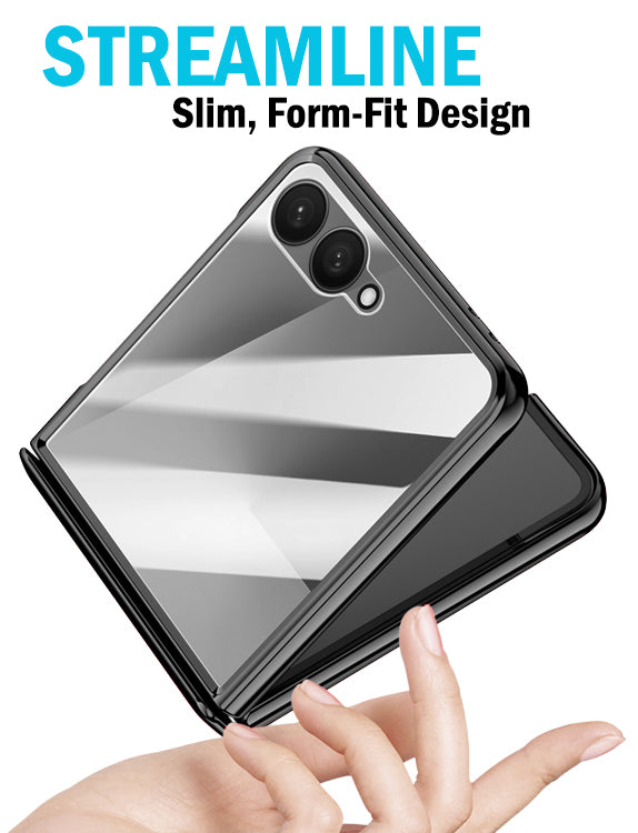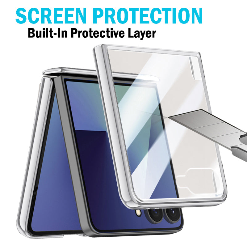 • BUILT-IN SCREEN GUARD: Your Screen is Protected by Transparent Tempered Glass Panel that is Built Into the Case. Your Touchscreen Remains Fully Functional Thru This Protective Anti-Scratch Layer. Clear Design with Electroplated Trim. Transparent Back Panel Will Showcase the Original Beauty of Your Z Flip7