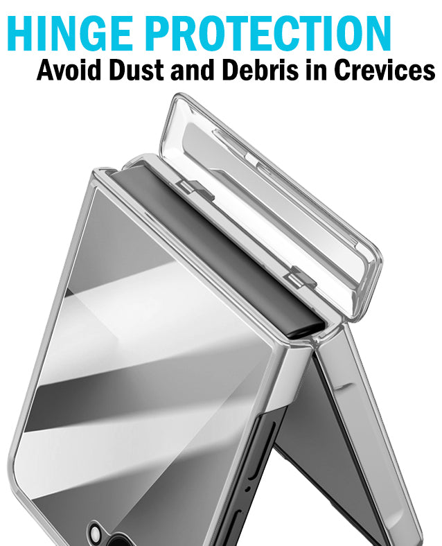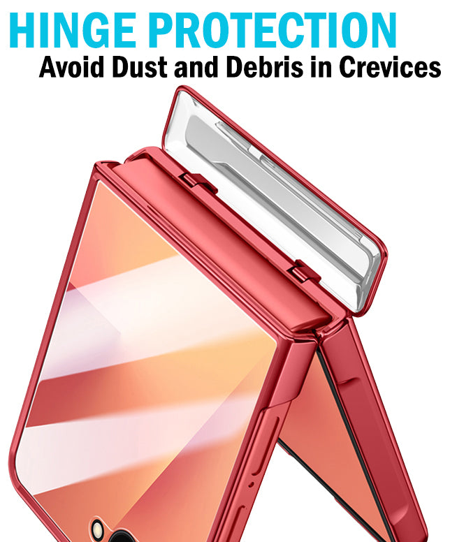 HINGE PROTECTION: The case has dedicated hinge to protect the hinge on your phone. Nobody wants dust and debris in their crack! Mechanism allows the panel to open and close along with the phone.
