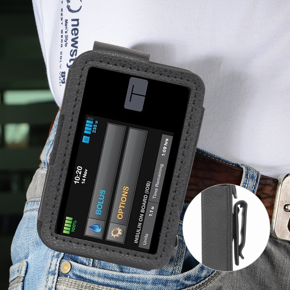 Black Leather Case with Belt Clip Screen Cover for Tandem t:Slim X2 Insulin Pump