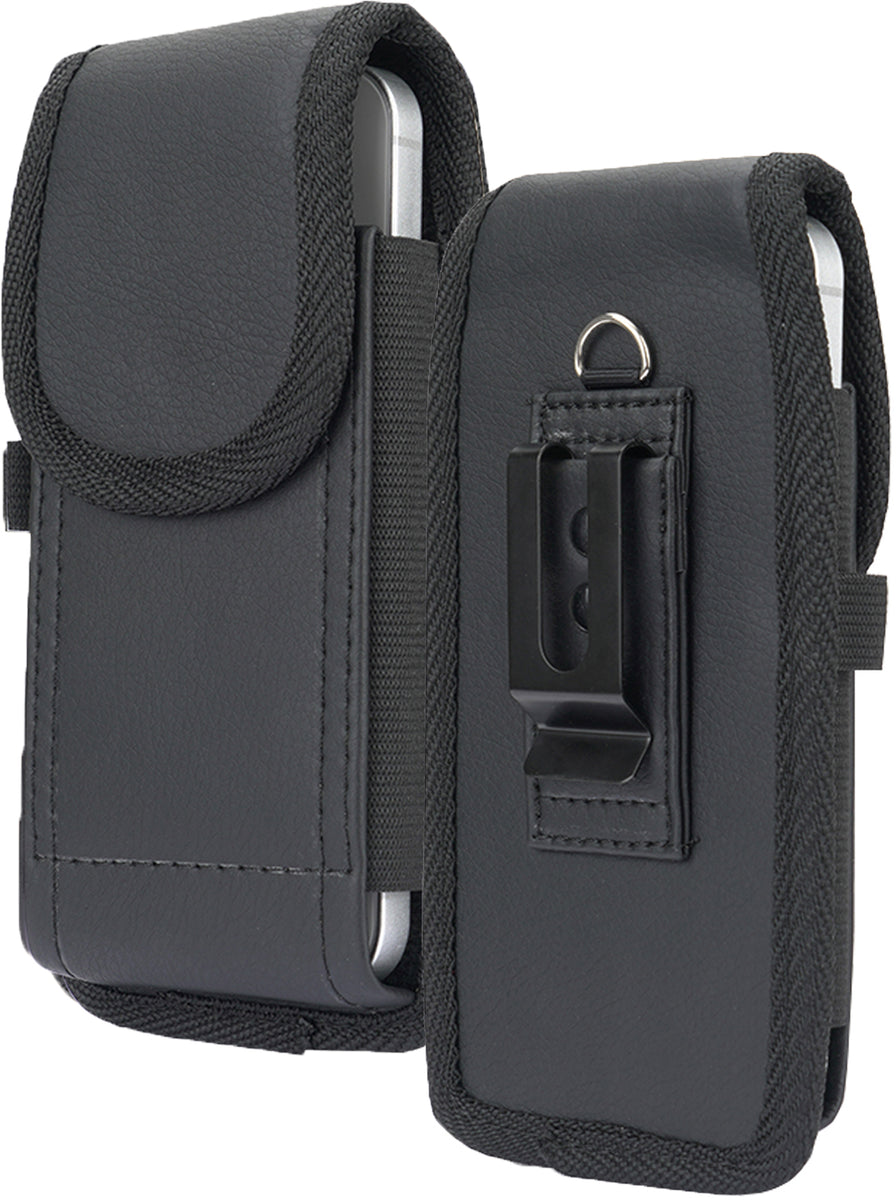 MATERIAL: This pouch-style holder is made of vegan leather that has been reinforced with rugged nylon trim. Soft and plush felt interior keeps your device cozy and scratch-free. The leather exterior has a classic grain texture that looks professional. High quality durable stitching. The elastic sides ensure a snug fit on your device. The pouch case offers different carrying solutions: