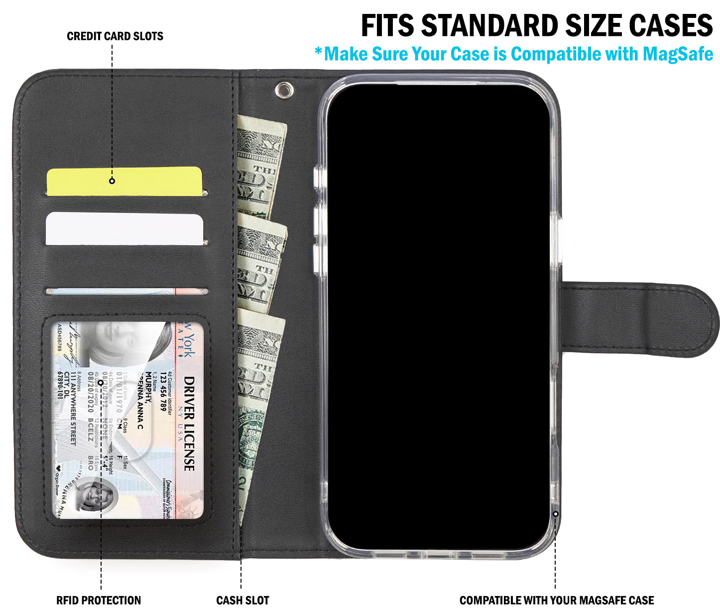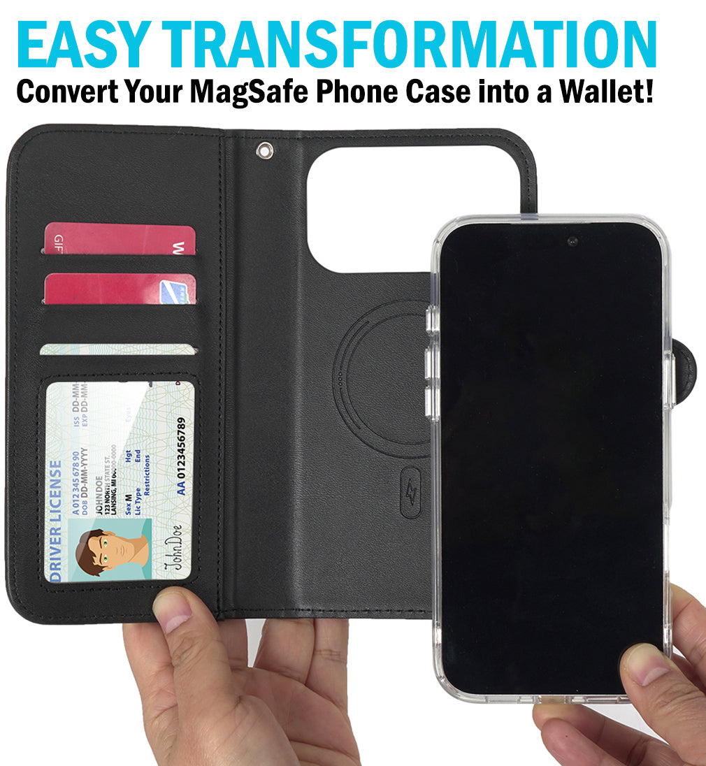 MAGNETIC WALLET: We've noticed traditional folio wallets can be a pain in the butt because your phone and wallet are always linked together. This problem has been solved via MagSafe magnetism! Now you'll have the freedom to use your iPhone independently OR use your iPhone encased in the wallet. Your case and this wallet will magnetically connect for quick convenience.