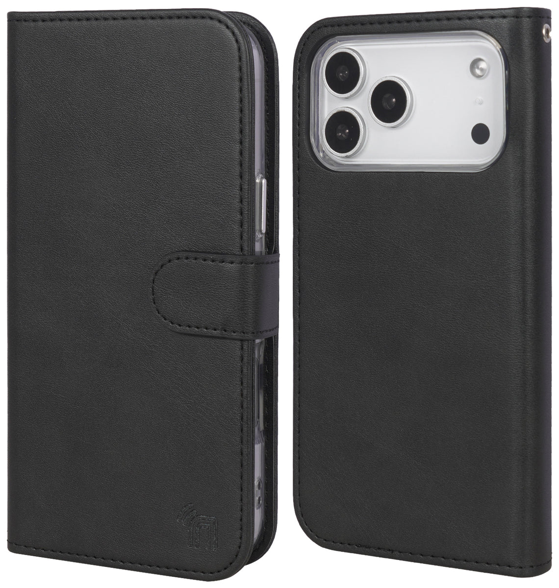 Black Leather Wallet + Strap iPhone 17 Pro Max (Compatible with Magsafe Case)