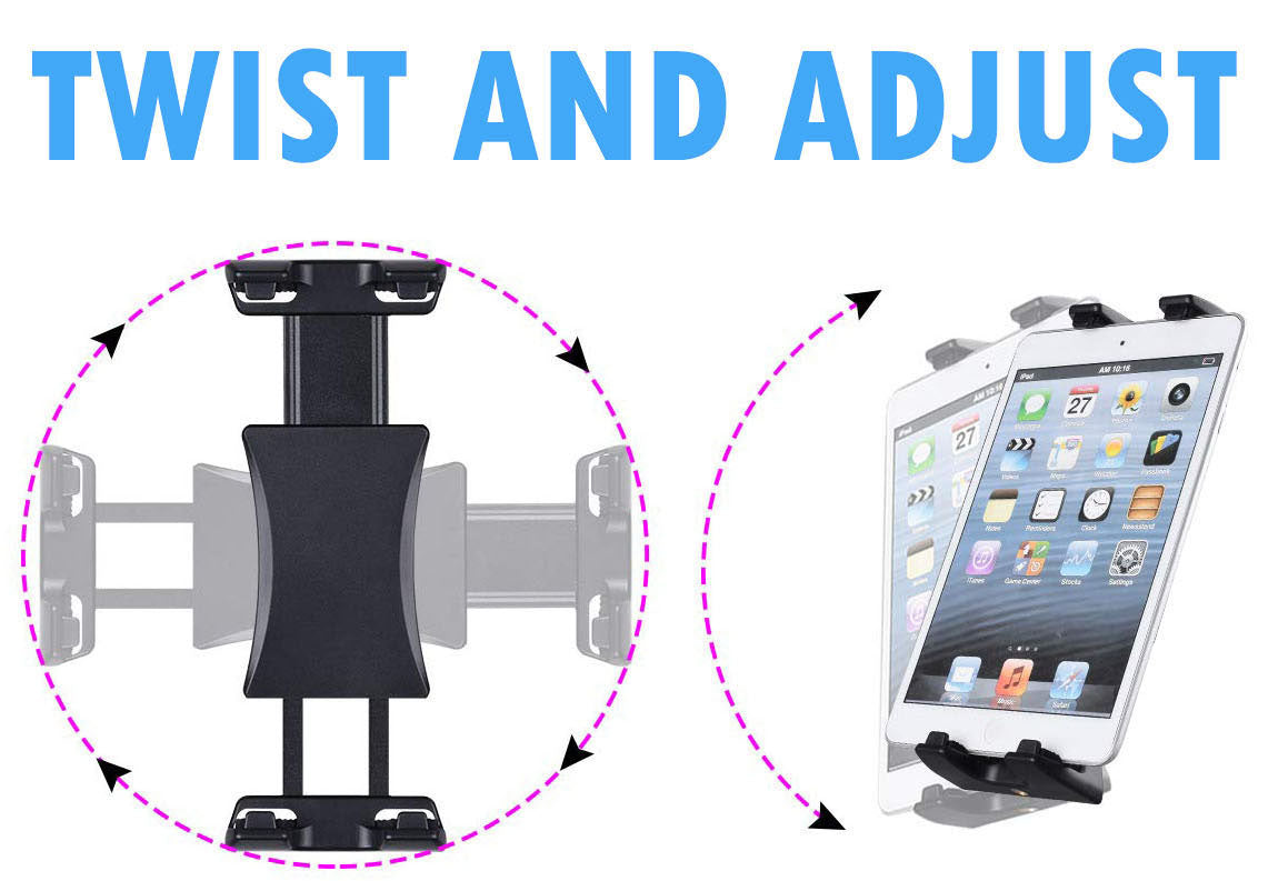 The HeadRest Mount is a heavy-duty car mount that is adjustable to accommodate all tablets and smartphones. The mount can tilt, turn, rotate in any desired position. It is easy to install on the back of your headrest and no tools are required.