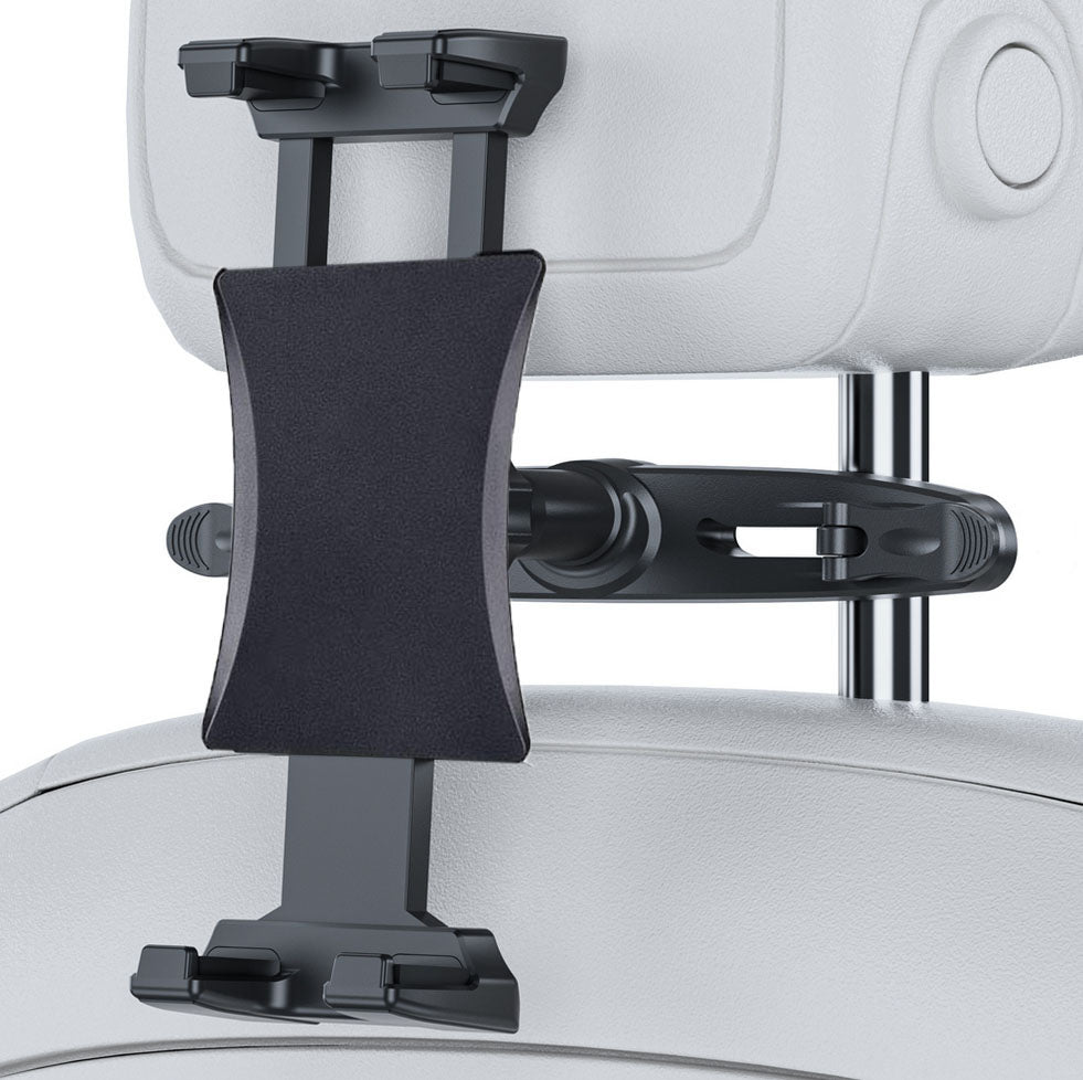 The HeadRest Mount is a heavy-duty car mount that is adjustable to accommodate all tablets and smartphones. The mount can tilt, turn, rotate in any desired position. It is easy to install on the back of your headrest and no tools are required.