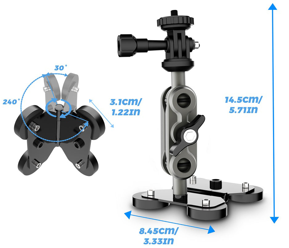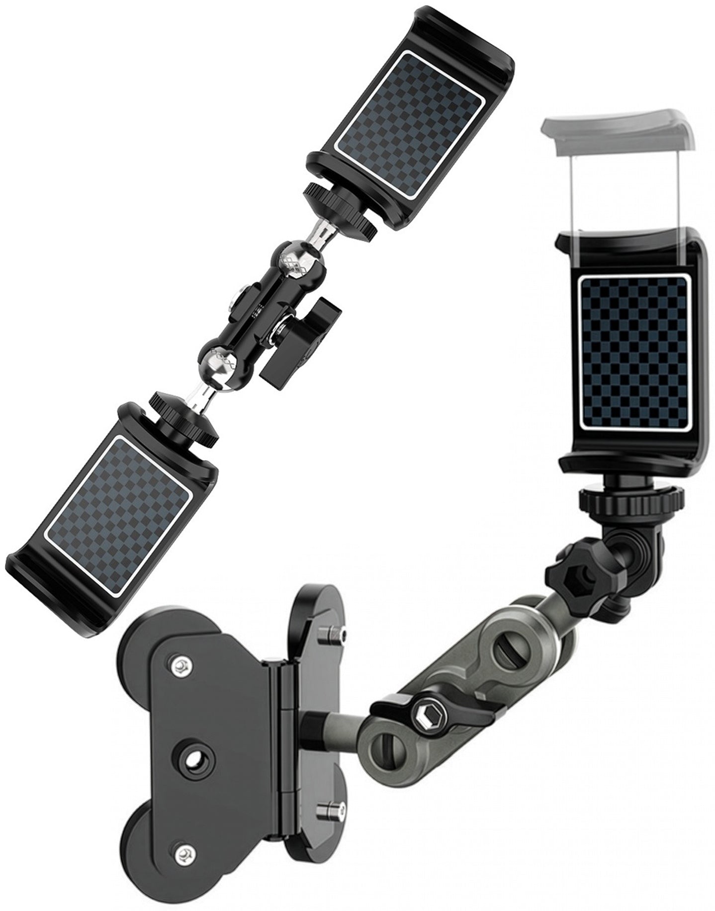 #2 MAGNETIC POST MOUNT: The ultra strong magnetic bracket is suitable for any metal post - Commonly found at baseball parks, softball fields, tennis courts, basketball post, etc - Very practical and versatile for many other locations or applications. Includes cell phone holder. The spring tension mount fits virtually any cell phone, iPhone, etc. Use your phone to record or stream the game. The metal ball joint offers 360 rotation and tilt. Adjust to your perfect angle/orientation then tighten the wingnut to lock in place. If you don’t attach the phone holder you can use the standard .25 inch screw as a connection point. Therefore this is compatible with other camera devices such as Mevo Start, Go Pro, Digital Camera, etc. Record the game with a stable and secure rig.