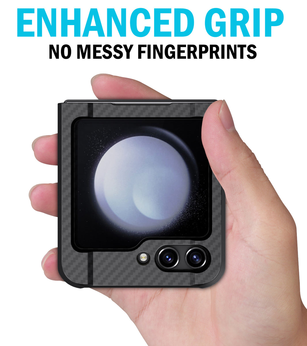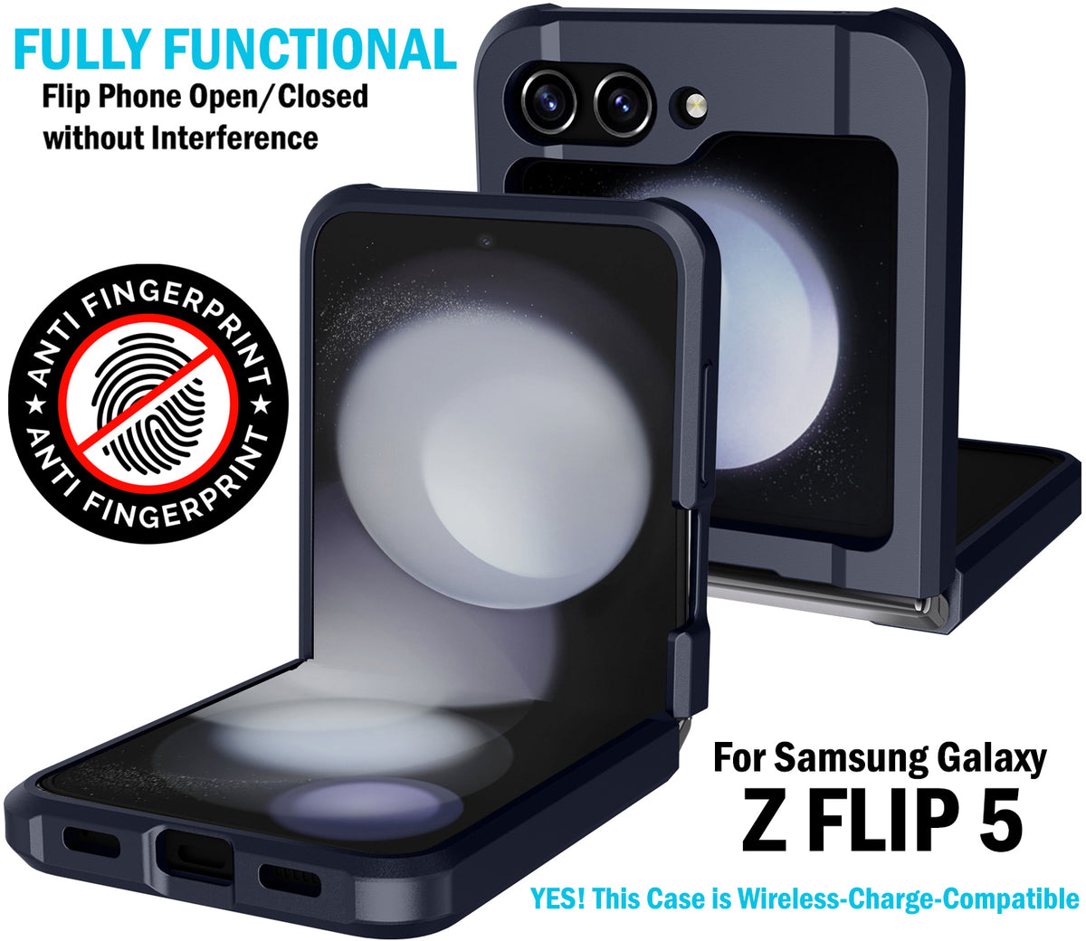 FUNCTIONALITY: You can still flip the phone open and closed as normal. If you want the hinge covered then please look elsewhere....We designed this case form-fit; without those bulky hinge covers. The elevated lip helps guard your camera lens; exterior screen is also recessed within the elevated trim.