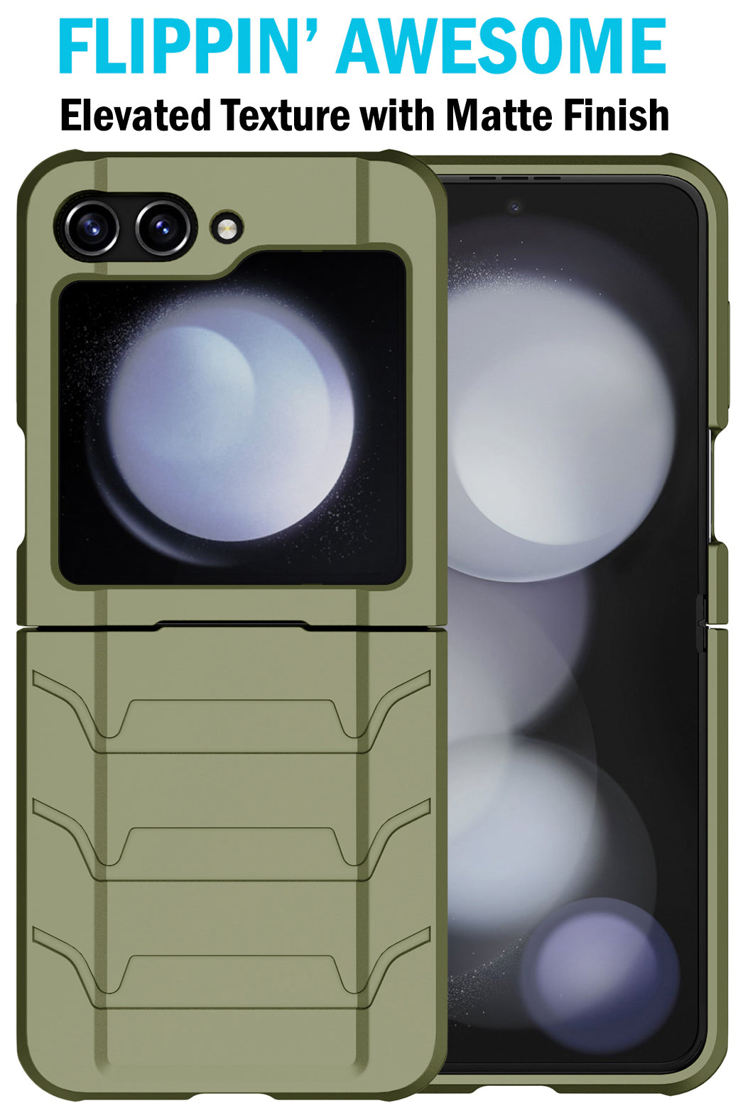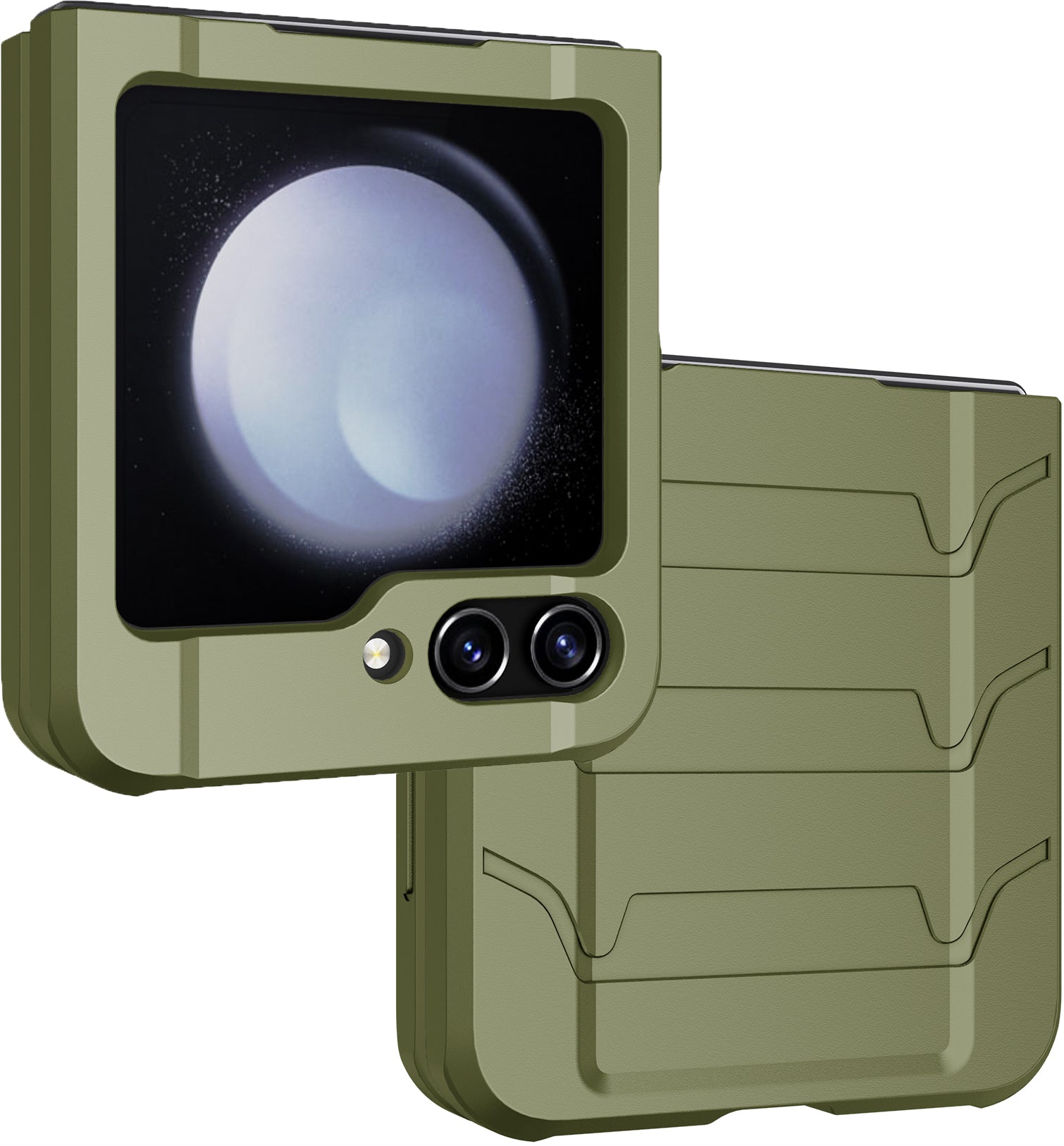 The Tactical Rugged Shield Combination is ready to serve and protect your Galaxy Z Flip 5 phone. This is a case + holster combo. The tough hybrid phone case provides impact protection, shock absorption, enhanced textured grip. Attach the holster clip to your side whenever you desire quick/convenient access.