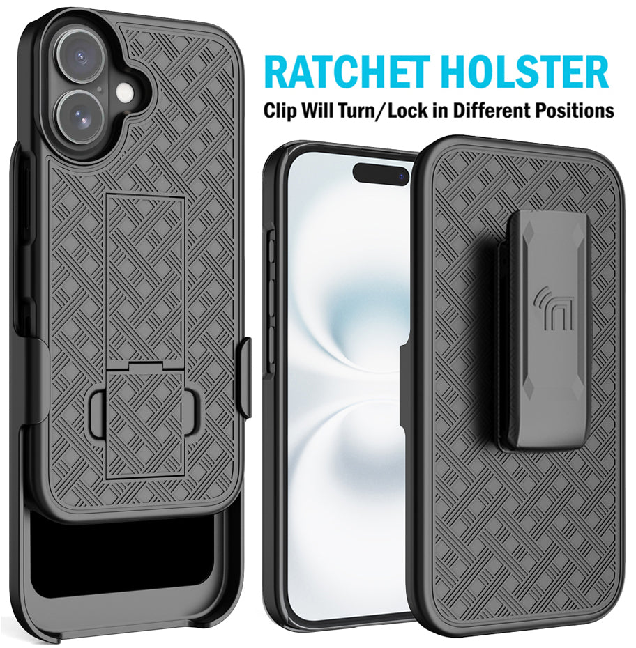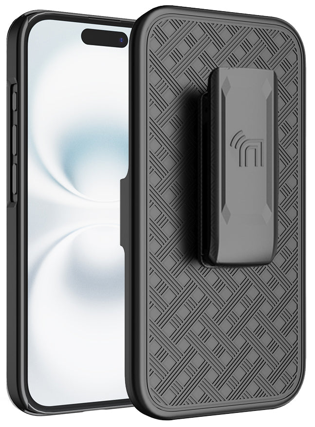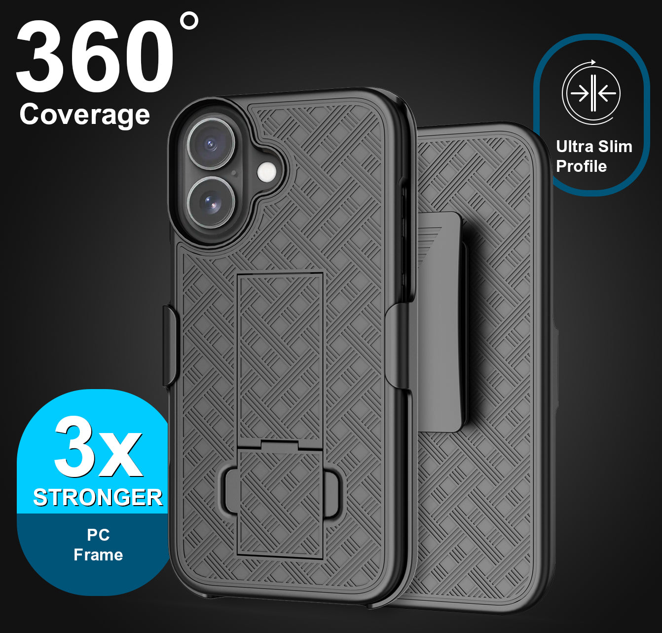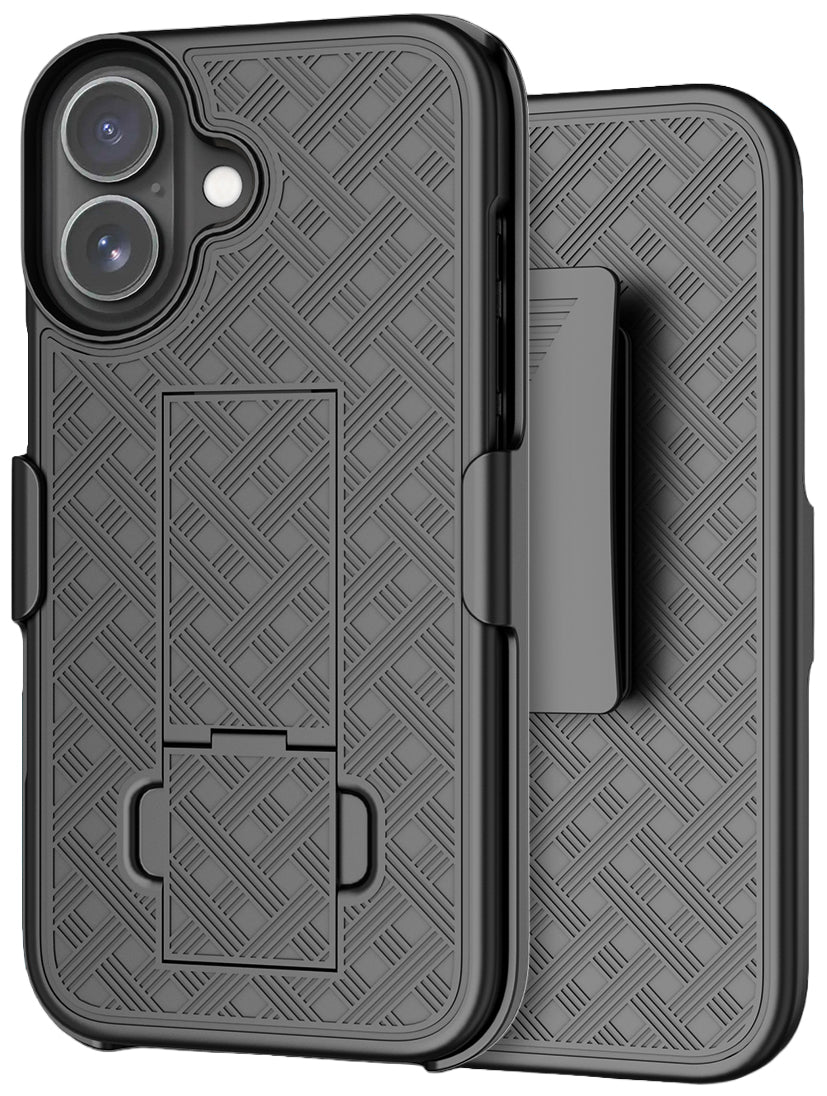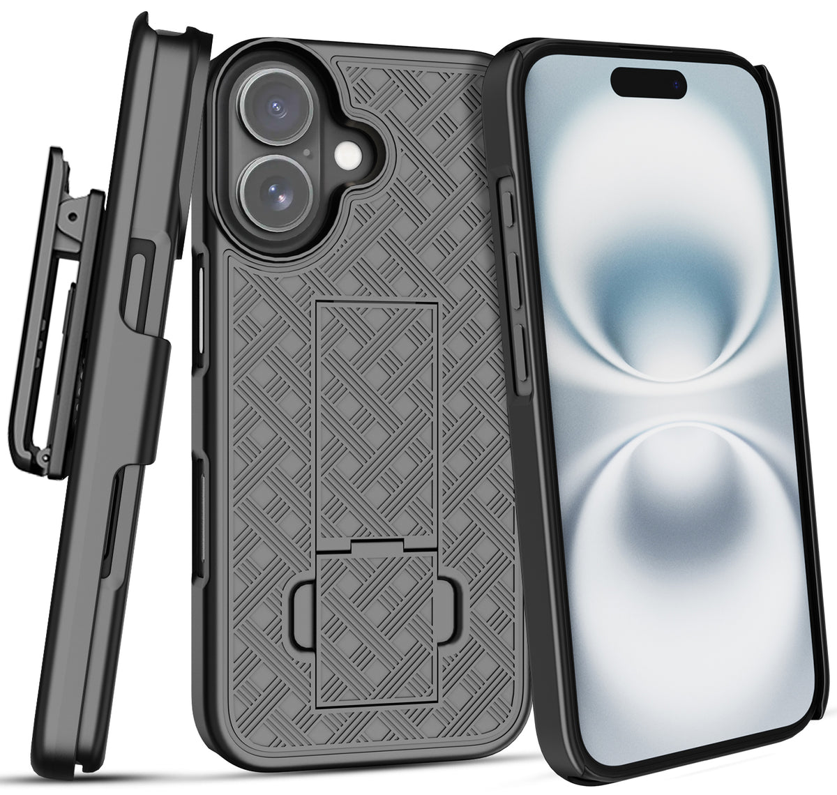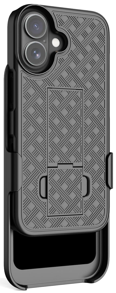Slim Hard Case Stand and Belt Clip Holster Combo for iPhone 17 - Black