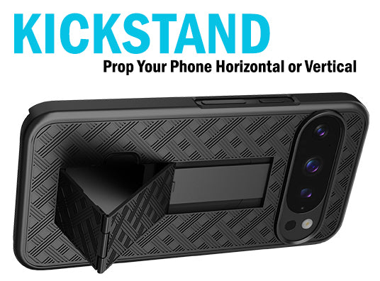 • TWO ITEM COMBINATION: Slim Kickstand Case + Custom Belt Clip Holster Combo for Google "Pixel 10 Pro XL"