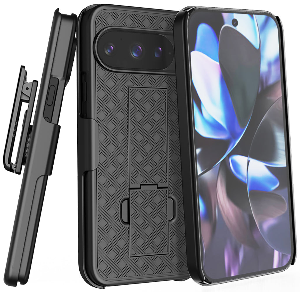 Slim Hard Case Stand and Belt Clip Holster for Pixel 10 Pro XL Phone - Black