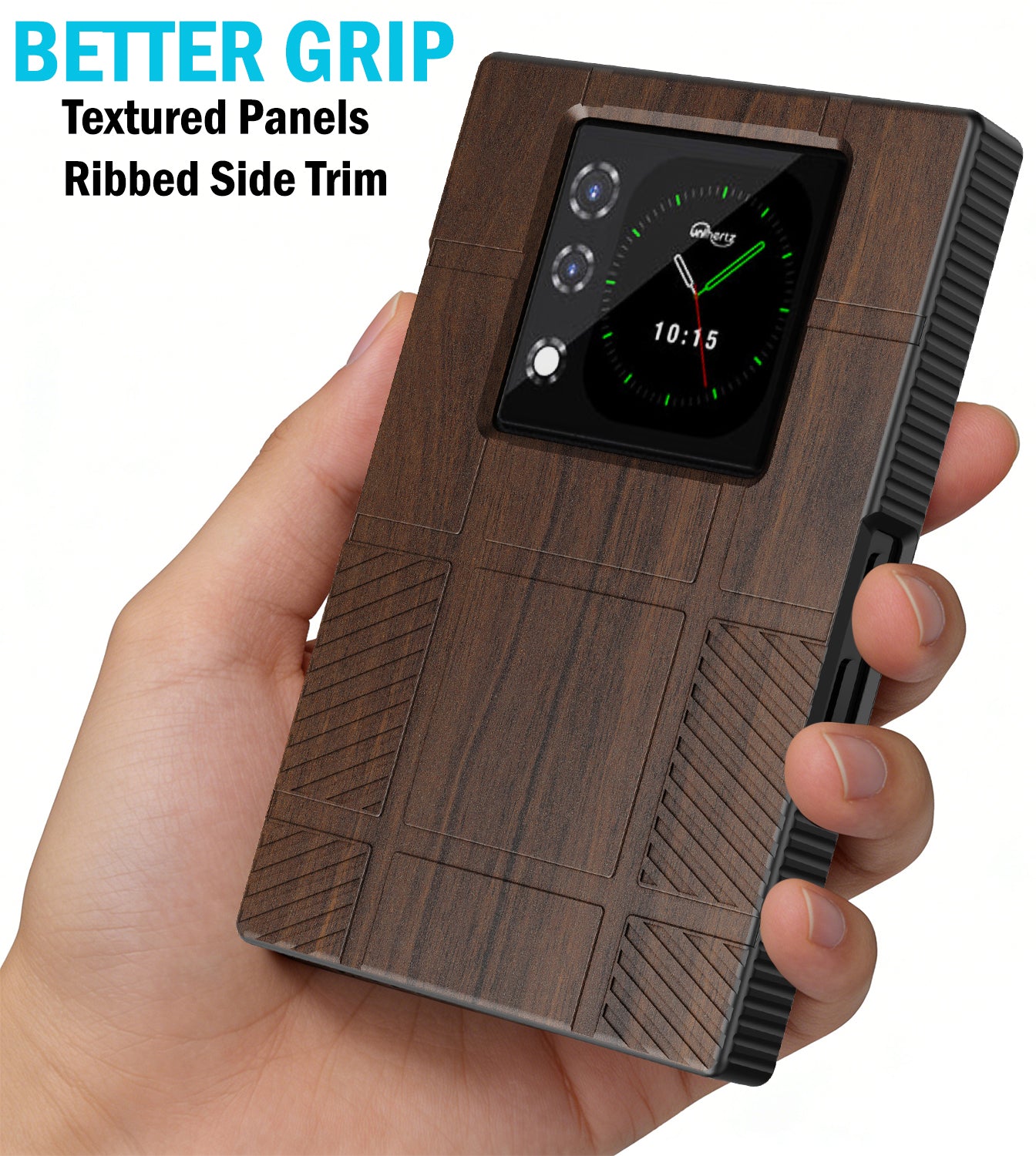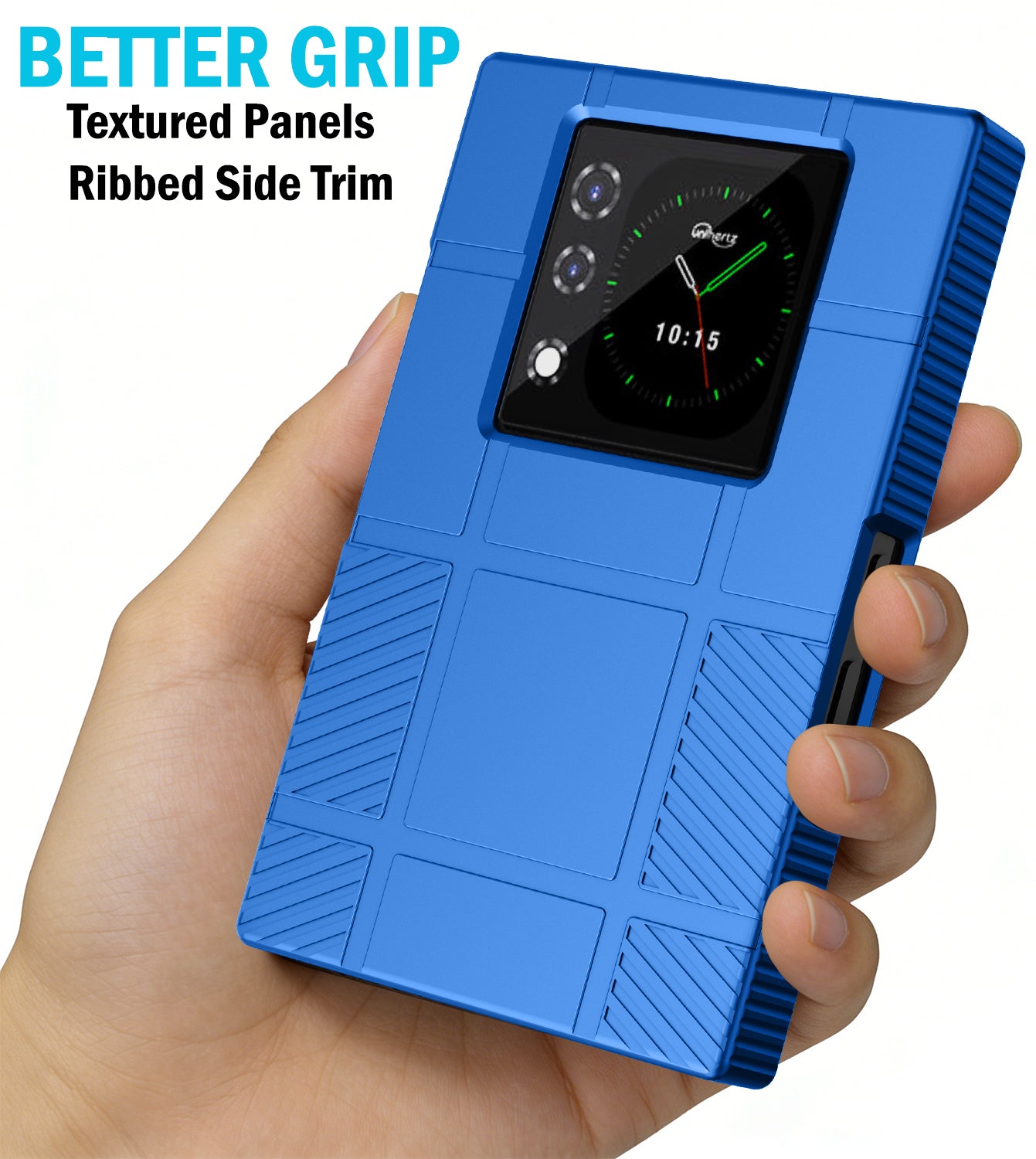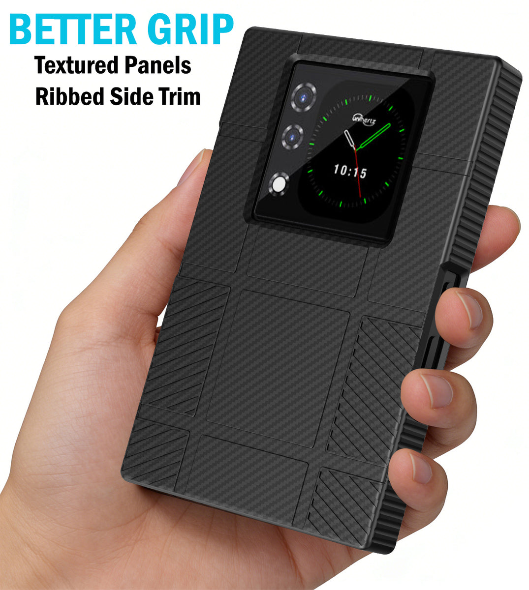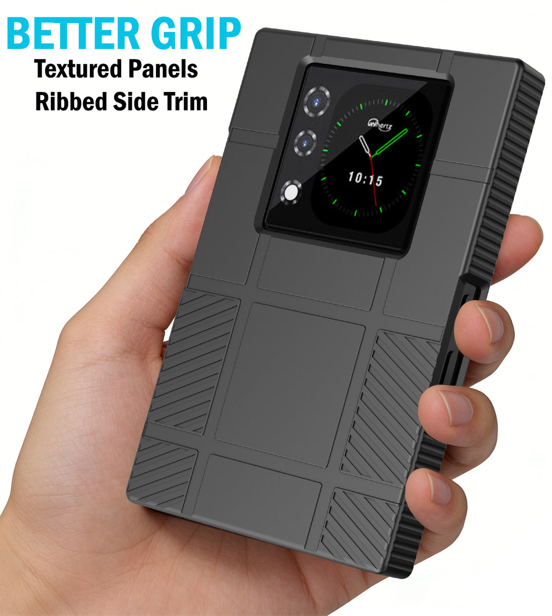 • GET A GRIP: Strategically Placed Textured Panels Provide Enhanced Grip as You Type. Slim and Lightweight. Bold Design Options. Protect Your Phone in Style!