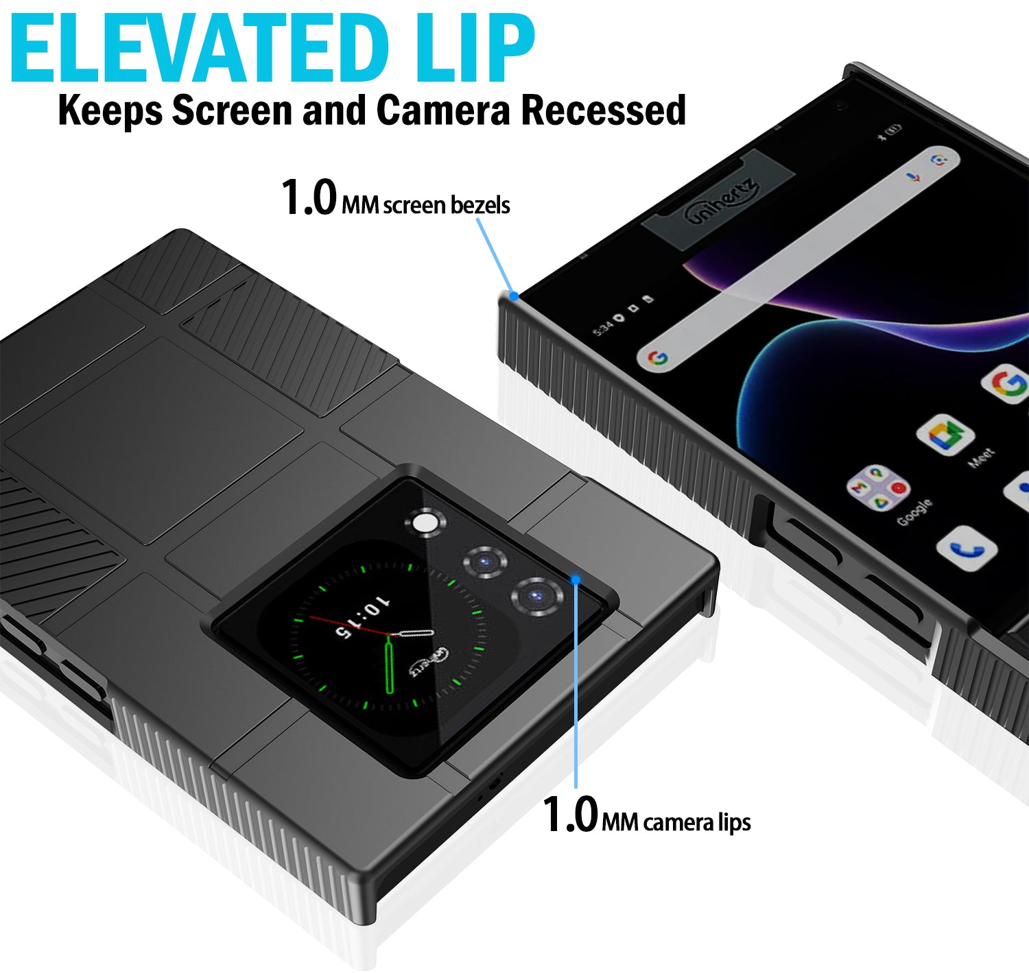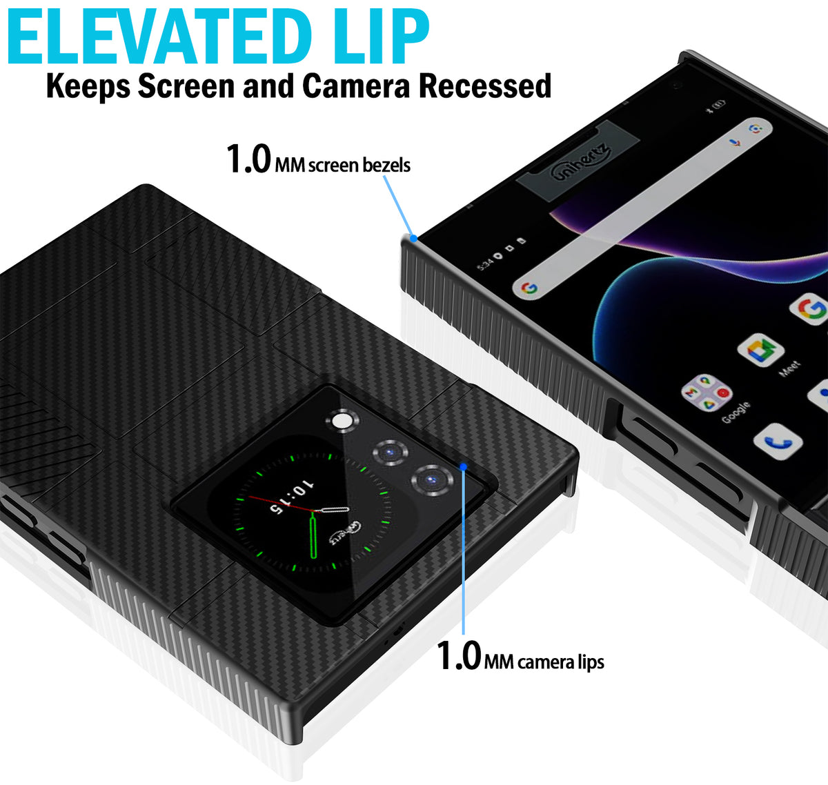 • RECESSED: Elevated Lip Makes Both Screens Recessed. Lay-Flat on Table without Scratching Surface. Industrial Hard Polycarbonate Provides Impact Protection; Shield Your Titan-2 from Dings/Scratches